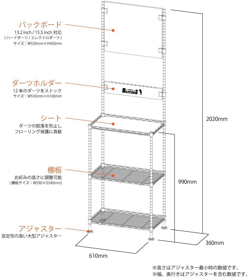 Steel rack system for easy assembly. Freestanding so you can install it anywhere you like. Large adjuster (feet) for stability. This is a professional dart stand that does not interfere with the interior atmosphere. It can also be removed from the wall to reduce vibration and noise from your neighbors.