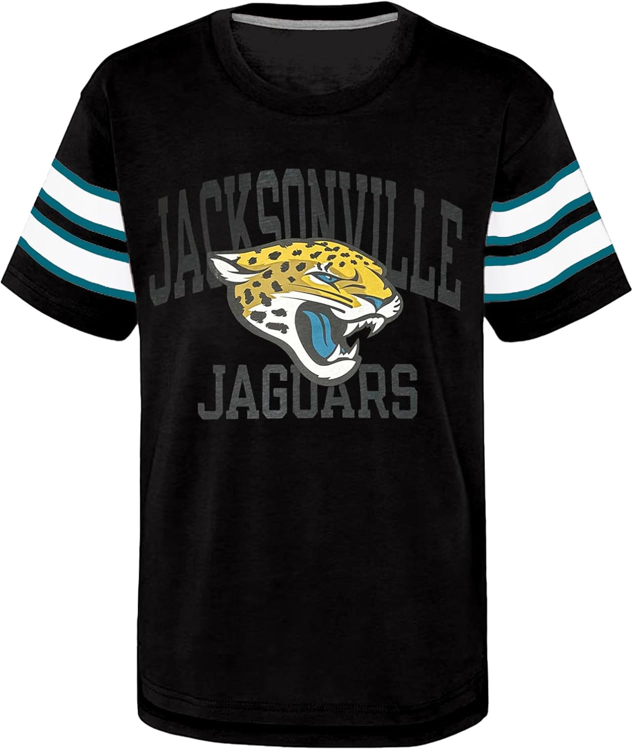 NFL KIDS YOUTH 8-20 TEAM OFFICIAL STRIPE WORDMARK PRIMARY LOGO COTTON SHORT SLEEVE FASHION FOOTBALL T-SHIRT - Let your young football fan showcase their team pride with the NFL Kids Youth 8-20 Team Official Stripe Wordmark Primary Logo Cotton Short Sleeve Fashion Football T-Shirt. This stylish, screen-printed cotton shirt is designed for comfort and durability, making it perfect for active kids. Featuring the team’s wordmark across the shirt, with the primary logo displayed on the center, this shirt is the ultimate way for young fans to represent their favorite NFL team. Available in official team colors, this cotton t-shirt is a great addition to any young fan's wardrobe. The NFL Kids Youth 8-20 Team Official Stripe Wordmark Primary Logo Cotton Short Sleeve Fashion Football T-Shirt is the perfect way for young football fans to display their team pride. With its bold design, comfortable fit, and officially licensed status, this shirt is a must-have for any young supporter. Whether they're cheering at the stadium or playing with friends, this t-shirt ensures they can show off their team spirit with pride.